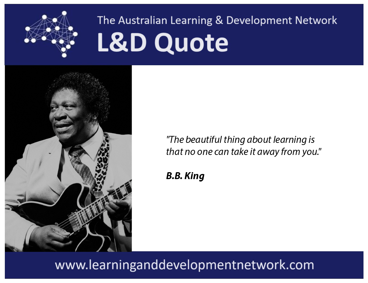 Here’s this week’s L&D quote, this one from B.B. King. We hope it resonates with our learning and development readers and, perhaps, offer some capability development inspiration and motivation to share with the workforce!