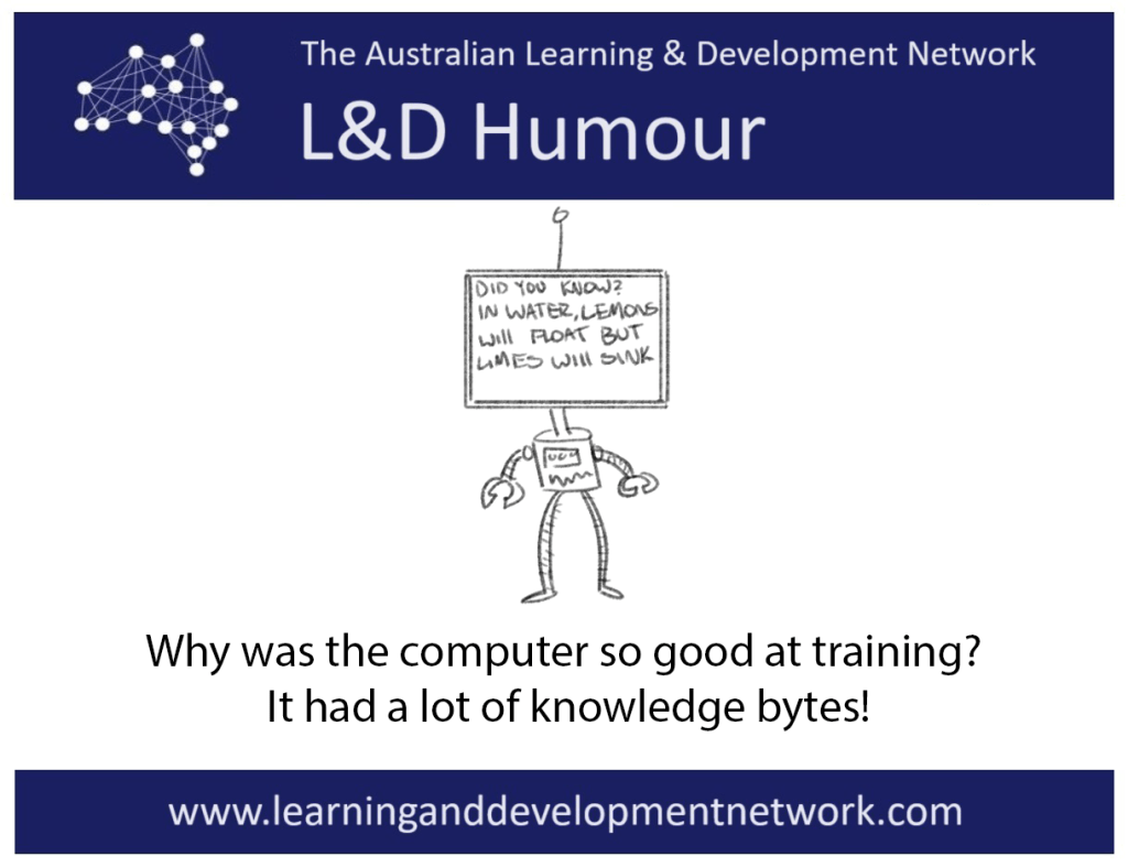 If you have any Learning & Development related jokes you’d like to share (especially if they’re better than ours!), please send them to AustralianLDN@yahoo.com.au.