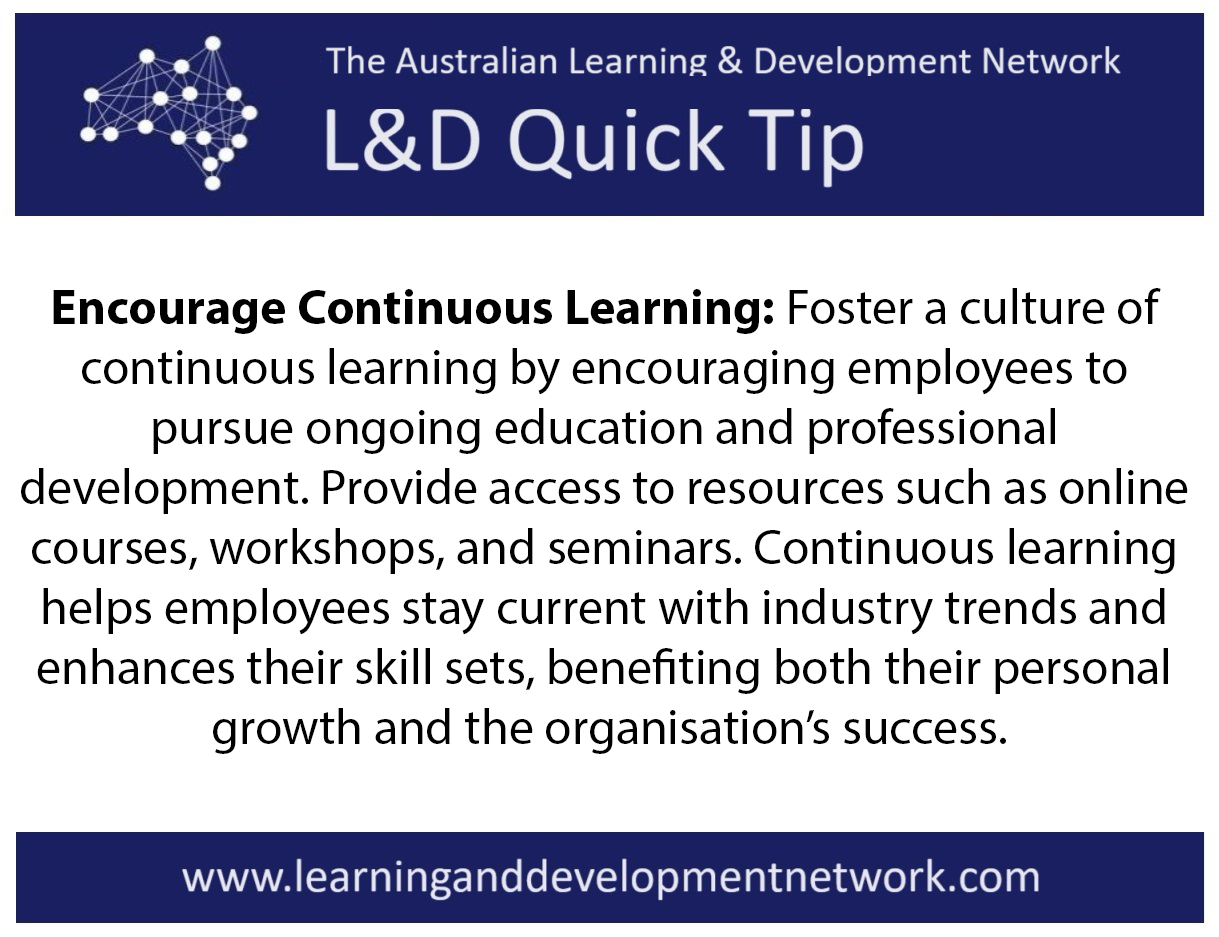If you have any Learning & Development quick tips you’d like to share, please send them to AustralianLDN@yahoo.com.au.