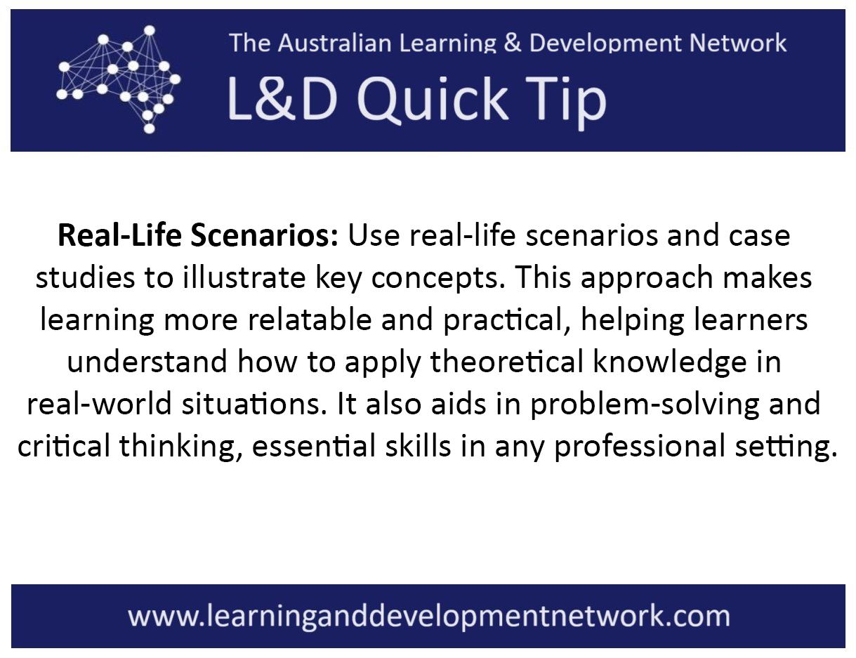 If you have any Learning & Development quick tips you’d like to share, please send them to AustralianLDN@yahoo.com.au.