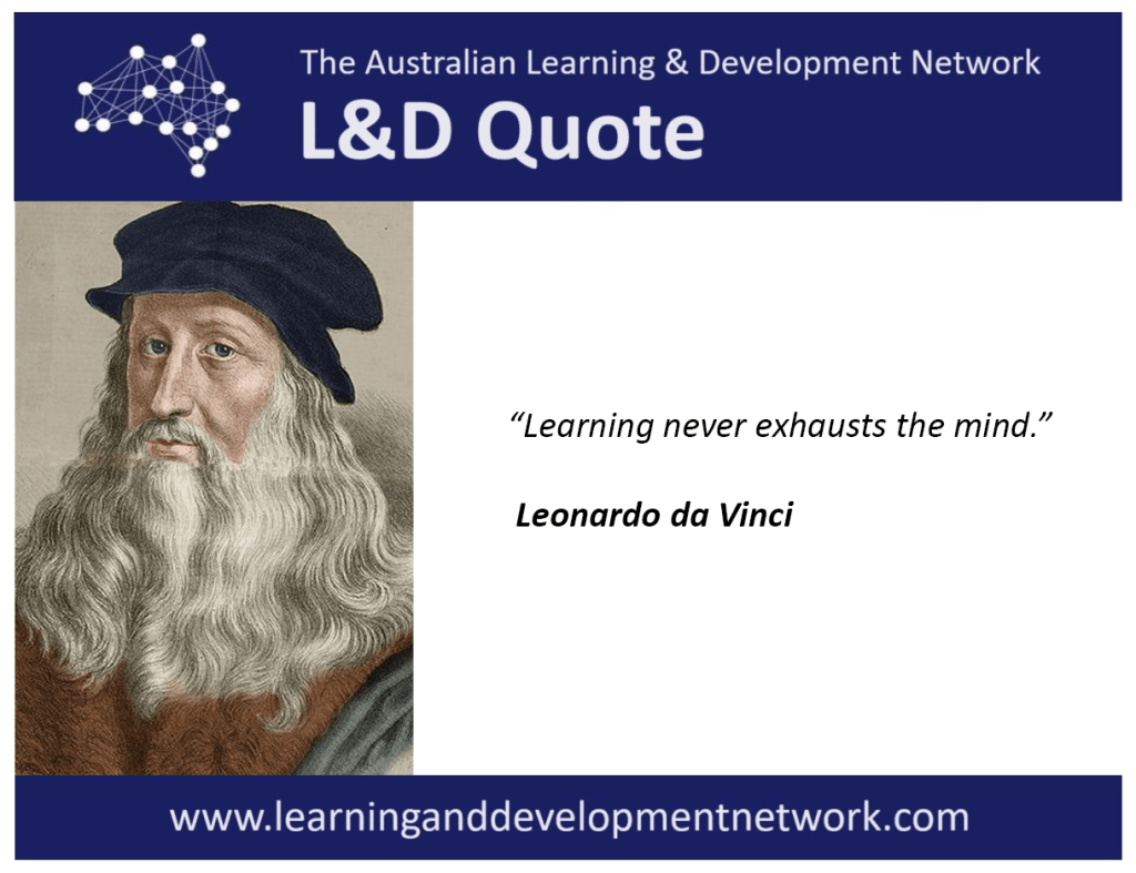 Here’s this week’s L&D quote, this one from Leonardo da Vinci. We hope it resonates with our learning and development readers and, perhaps, offer some capability development inspiration and motivation to share with the workforce!