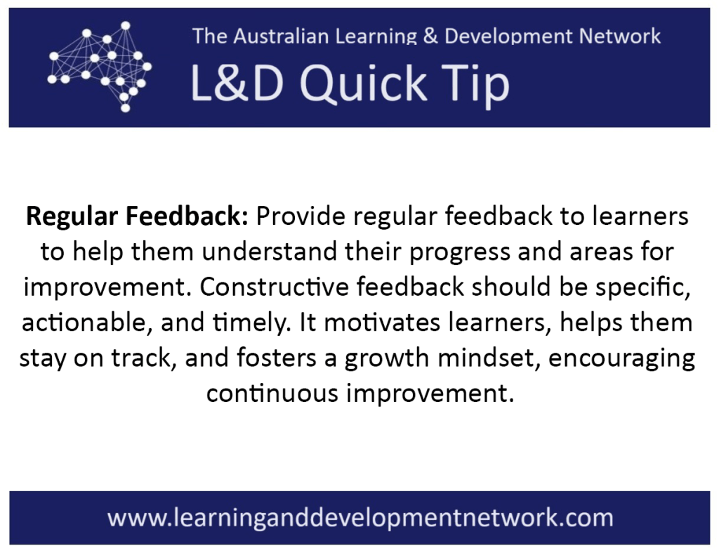 Regular Feedback: Provide regular feedback to learners to help them understand their progress and areas for improvement. Constructive feedback should be specific, actionable, and timely. It motivates learners, helps them stay on track, and fosters a growth mindset, encouraging continuous improvement.