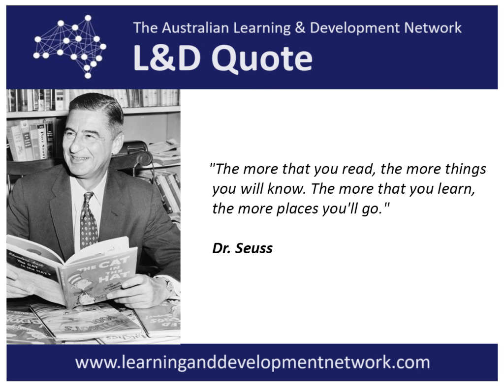 Here’s this week’s L&D quote, this one from Dr. Seuss. We hope it resonates with our learning and development readers and, perhaps, offer some capability development inspiration and motivation to share with the workforce!